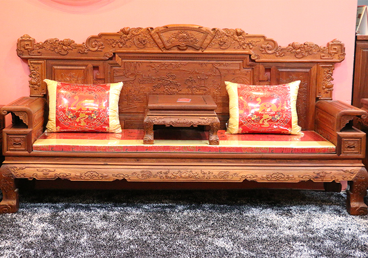 第一,表面不要放置熱水杯。為了保護紅木家具的面板不被劃傷,又要顯示它的紋理,一般應在臺面上放置厚玻璃板,且用小吸盤墊隔開。紅木家具表面避免長期放置過于沉重的物品,放置瓷器銅器等裝飾物品時要特別小心,最好是墊一塊軟布;