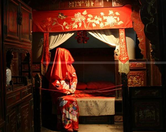 新婚之夜,在鬧洞房之前,首先要為新人布置好洞房。在黃歷中,我們會看到“安床”一詞,那么何為安床呢?其實“安床”是一個結(jié)婚術(shù)語,指嫁娶前男方安置新人房中的床。一般是在選定吉日后,在婚前幾天由“一世好運的男士”把新床移到適當?shù)奈恢谩N恢靡滥信p方的八字以及神位等決定,而安床的住置亦不可與桌柜、方櫥的尖角相對。然后,再由一位“兒孫滿堂的女士”負責鋪床,并擺上各式喜果、蓮子、百合、花生、紅棗等很多吉利的東西在新床上,喻意百年好合,早生貴子!安床之后,禁讓自己或其他成年人坐臥,寡婦、失婚者尤忌;但可先讓嬰孩在床上玩耍,寓意添丁發(fā)財。