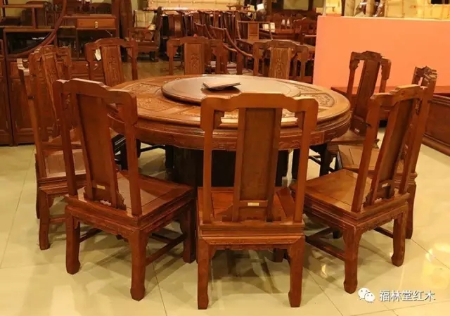 福林堂紅木—緬甸花梨木精品—福臨門面雕圓桌